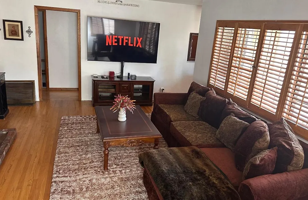 Charming Tarzana Retreat - Cozy 3 Bedroom Home de Los Angeles propose des chambres dotées d'un vestiaire et d'un coin repas, ainsi que d'une cheminée en pierre pour votre confort. Les divertissements dans la chambre comprennent une TV à écran plat avec des chaînes satellite, tandis que des équipements tels qu'une climatisation sont également fournis. Elles comportent une toilette séparée et une douche dans les salles de bain, en outre, le confort est assuré par un sèche-cheveux et des draps de bain.